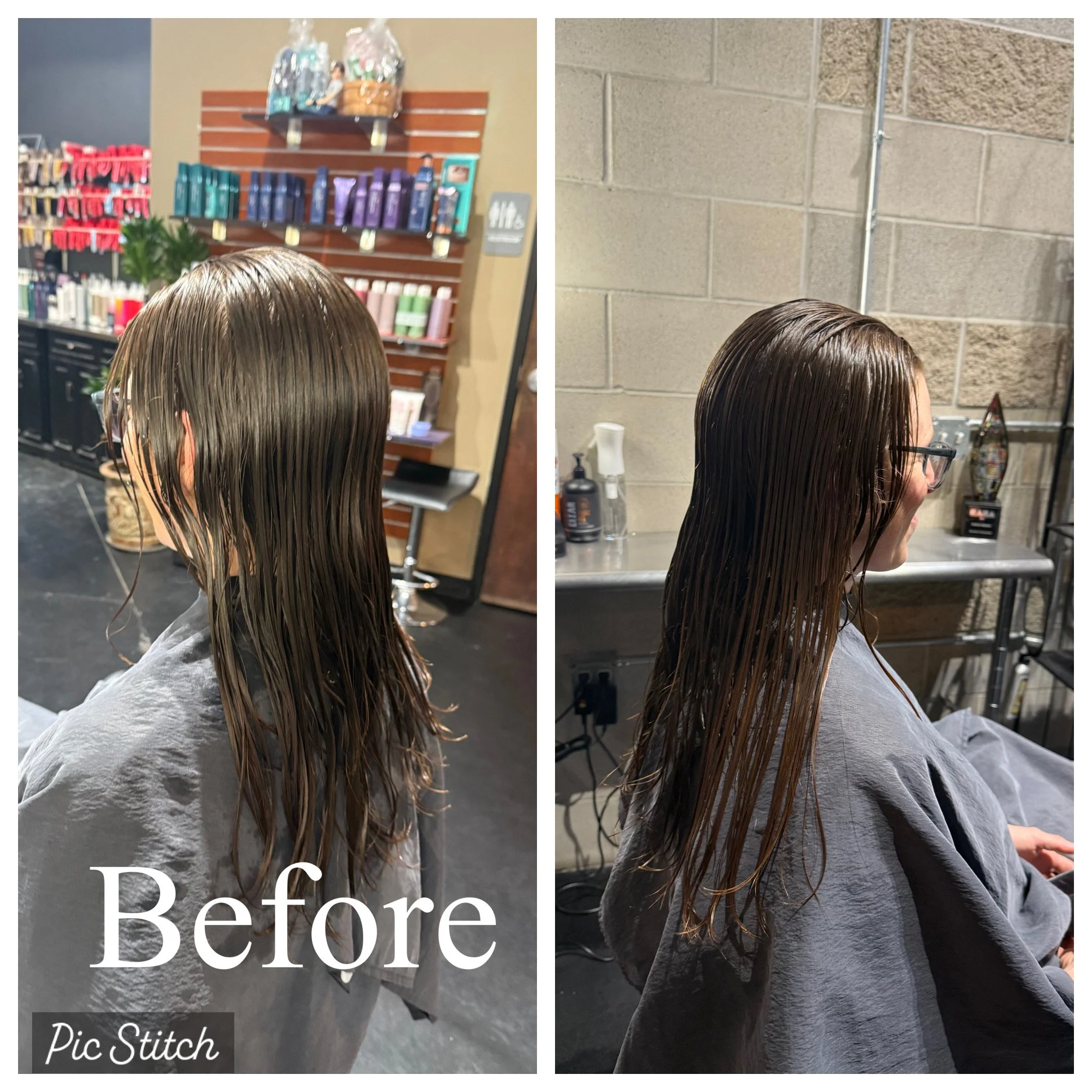 A rich, even shade applied from roots to ends for a radiant, polished finish. Custom-blended to enhance your complexion and hair texture, this service delivers depth, shine, and seamless coverage — leaving your hair looking healthy, vibrant, and effortlessly refined.